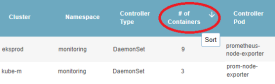 When the page is initially loaded, this table is sorted alphabetically, by Cluster name, Namespace, Controller/Pod and then Container Name.