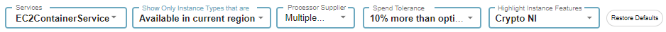 These instance types possess the specific feature selected from the Highlighted Instance Features dropdown control. |