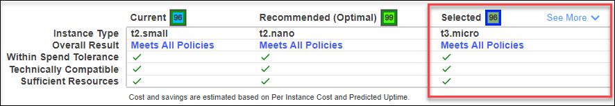 These instances meet the technology and resource requirements of your workload, but their Cost exceeds the defined spend tolerance. Cost is the on-demand price * Uptime % |